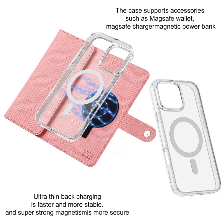 Funda para Teléfono Vili Ghb-C Series iPhone 13 Rfid Magsafe Cuero con Tapa Magnética (Rosa)