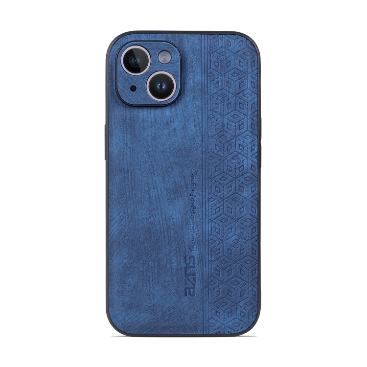 Estuche para teléfono Azns iPhone 14 con sensación de piel en relieve 3D (Azul Zafiro)