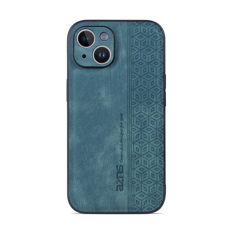 Estuche para Teléfono Azns iPhone 14 Sensación de Piel En Relieve 3D (Verde Oscuro)
