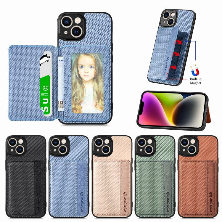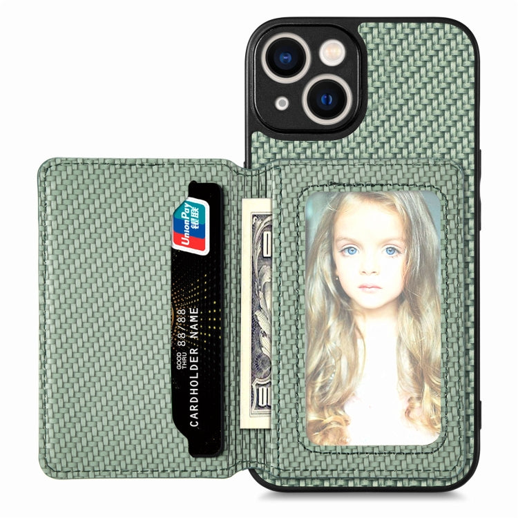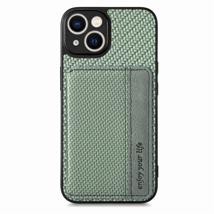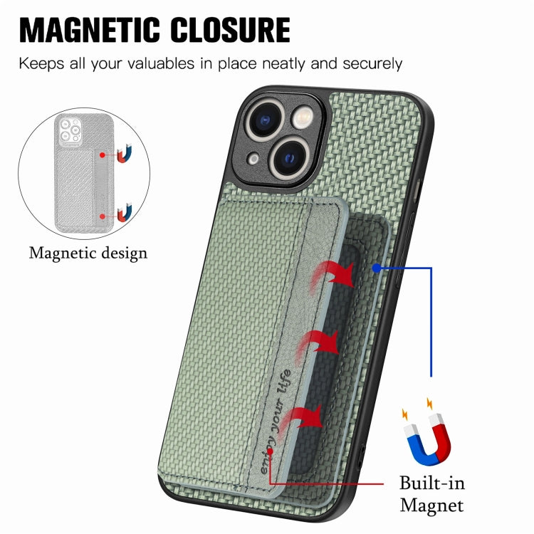 Caja de Teléfono para iPhone 14 con Bolsa de Tarjeta Magnética Fibra de Carbono (Verde)