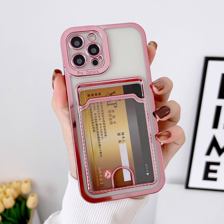 Pour étui de téléphone à fente pour carte iPhone 14 avec cadre de galvanoplastie (rose)