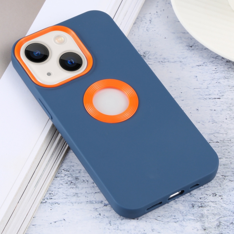 Funda de teléfono TPU Para iPhone 14 3 en 1 Color de Contraste (Naranja Azul Oscuro)