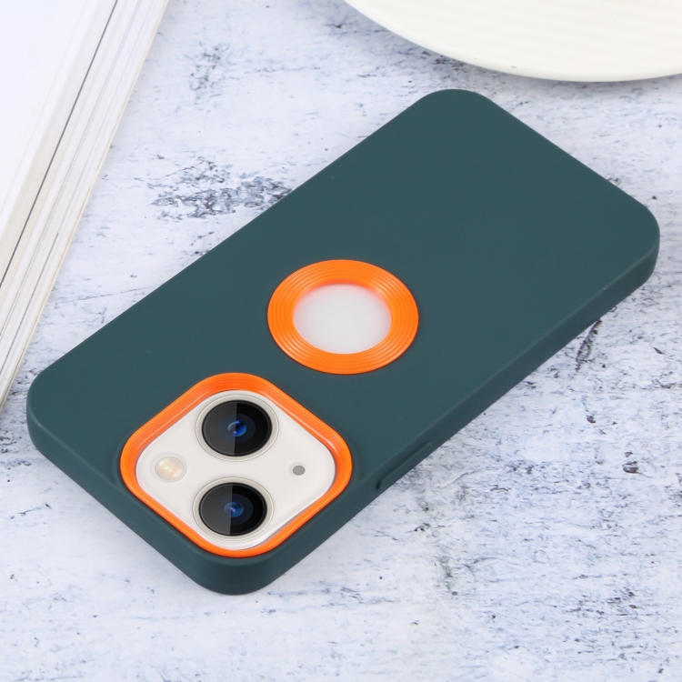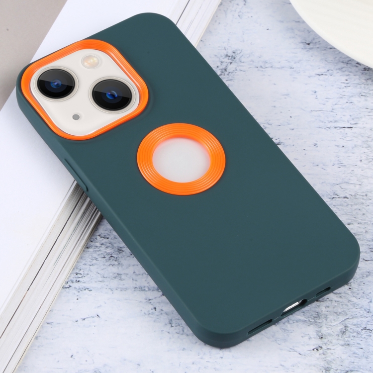 Funda de teléfono TPU Para iPhone 14 Color de Contraste 3 En 1 (Naranja Verde Oscuro)