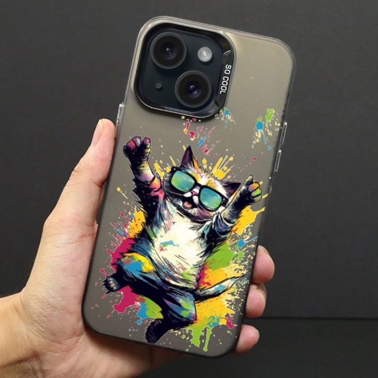 Funda para iPhone 14 Color Ink Frosted PC y Estuche TPU Gafas de Gato