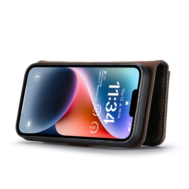 Estuche de Cuero Magnético Dg.Ming Crazy Horse Texture para iPhone 14 (Gris)