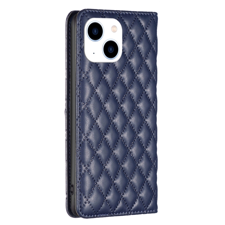 Funda Flip para iPhone 14 Diamond Lattice Leather con cierre Magnético (Azul)