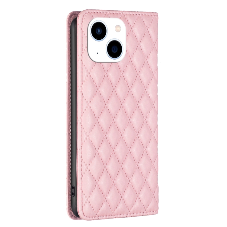 Funda Flip para iPhone 14 Diamond Lattice Leather Magnética (Rosa)