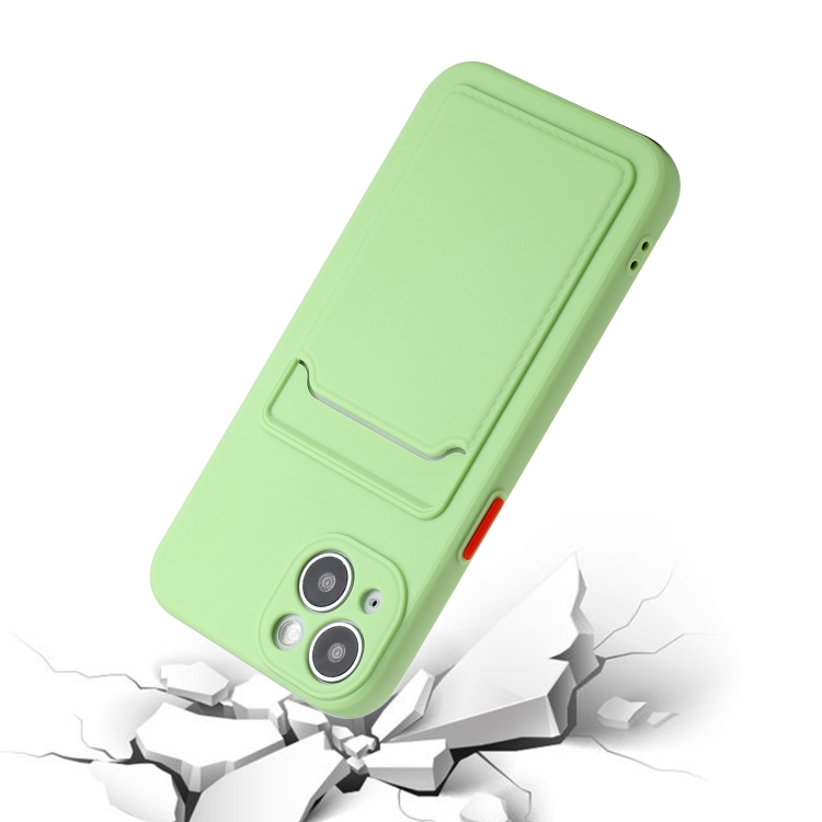 Funda de teléfono para iPhone 14 con ranura para tarjeta TPU a prueba de golpes (Verde Matcha)