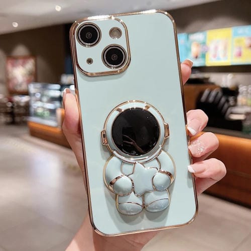 Estuche para Teléfono Embrace Stars Galvanoplastia para iPhone 14 con Soporte para Astronauta (Verde)