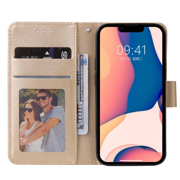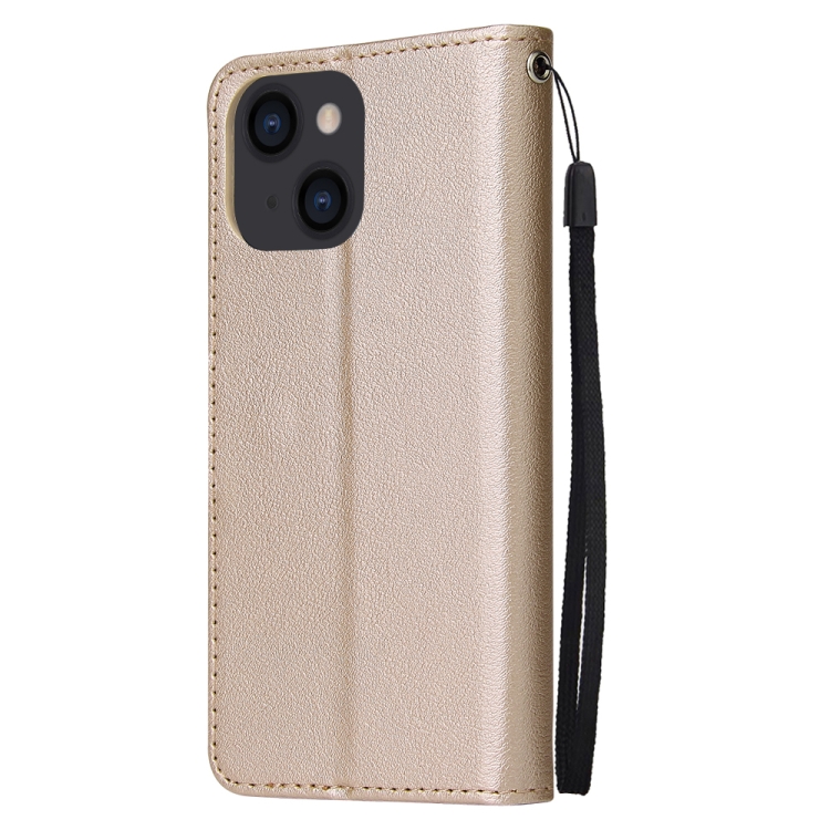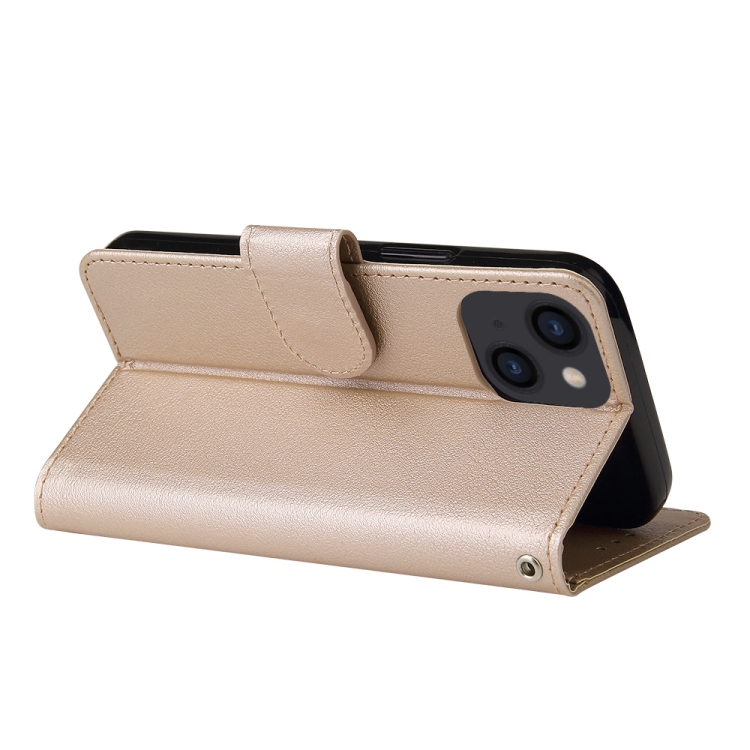 Estuche de Cuero para iPhone 14 con Tapa Horizontal Multifuncional y Tres Ranuras para Tarjetas (Tyrant Gold)