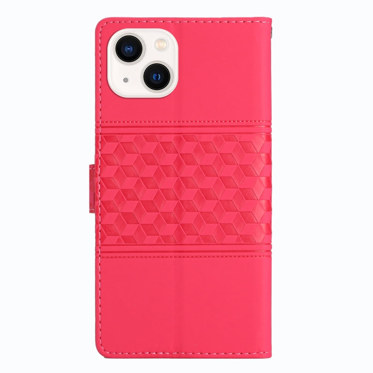 Estuche para Teléfono iPhone 14 Cuero Sensación de Piel En Relieve con Cordón (Rojo)