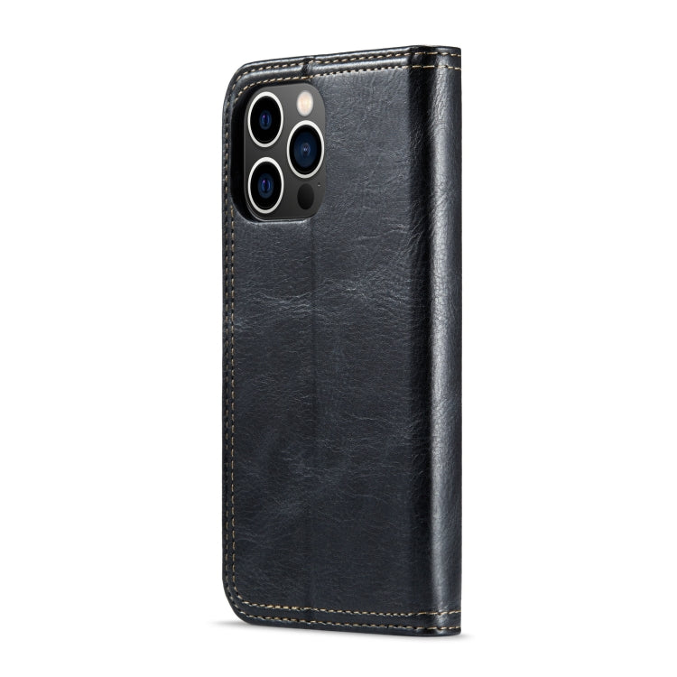 Funda para iPhone 14 Fierre Shann Vintage Bark Texture Wallet de Cuero (Negro)