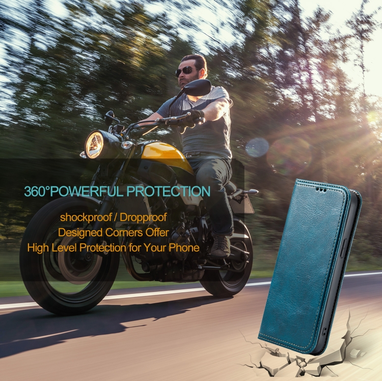 Funda para iPhone 14 Fierre Shann Vintage Bark Texture Wallet de Cuero (Verde)