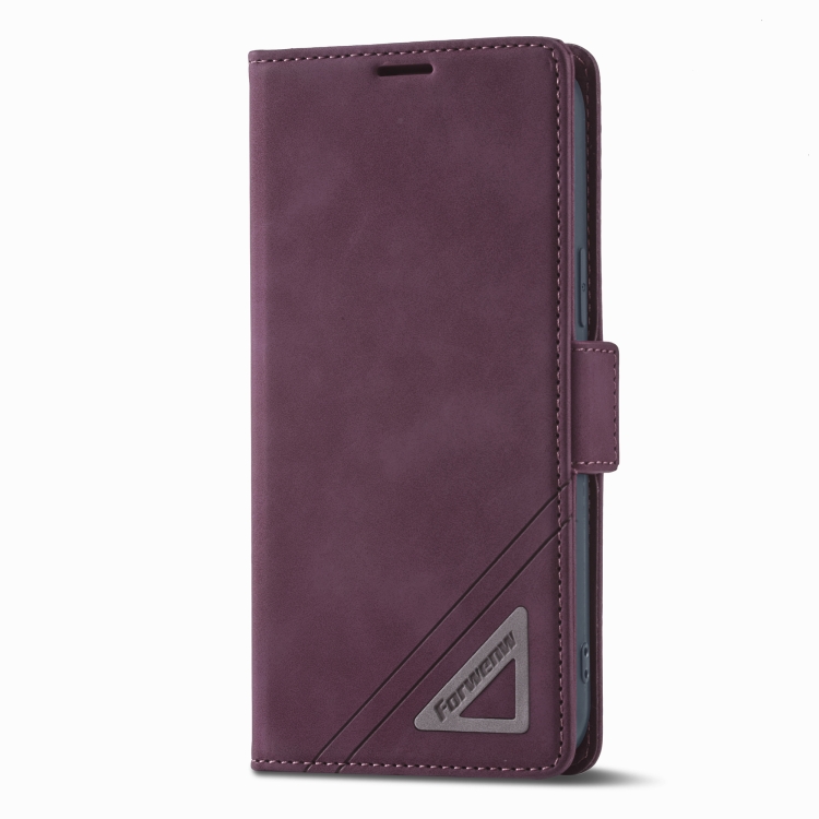 Funda para Teléfono FoRWenw iPhone 14 Cuero con Hebilla de Doble Cara (Rojo Vino)
