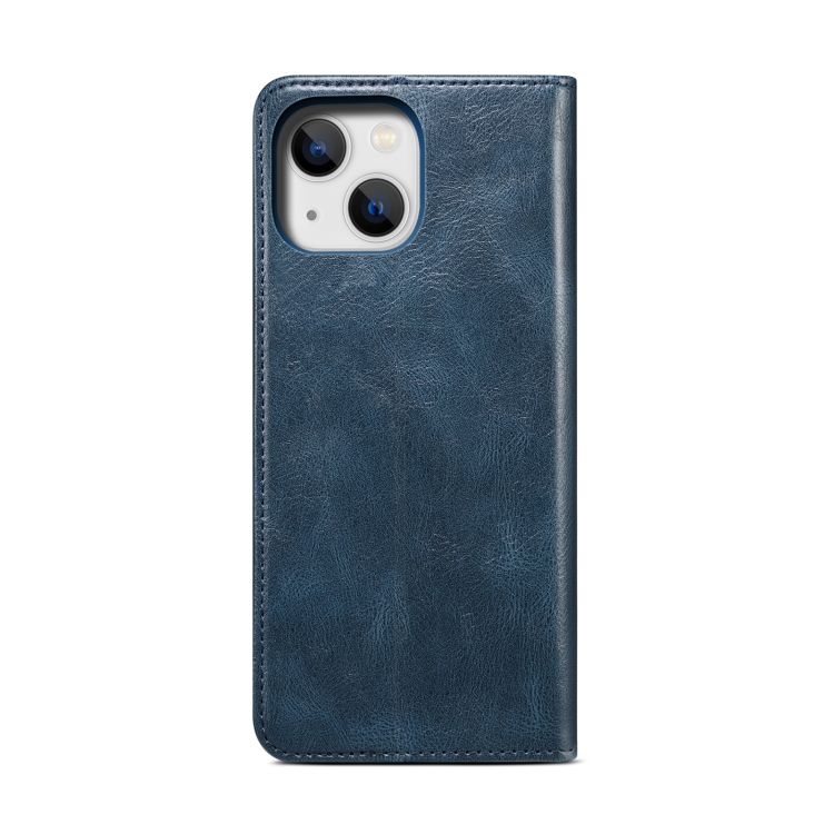 Funda para iPhone 14 Cuero Tapa Horizontal Textura Caballo Loco (Azul Marino)