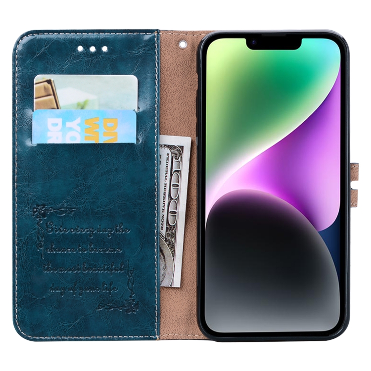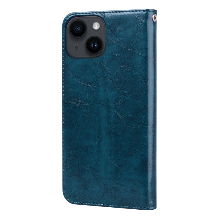 Funda para iPhone 14 Cuero Textura de Cera de Aceite (Azul)
