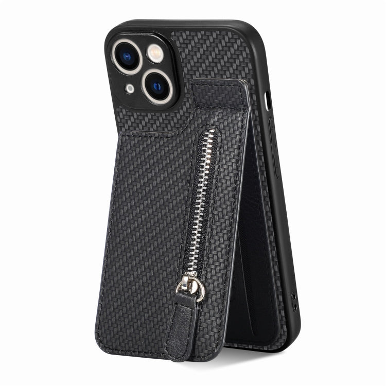 Funda de Teléfono iPhone 14 Fibra de Carbono con Cremallera Vertical (Negro)