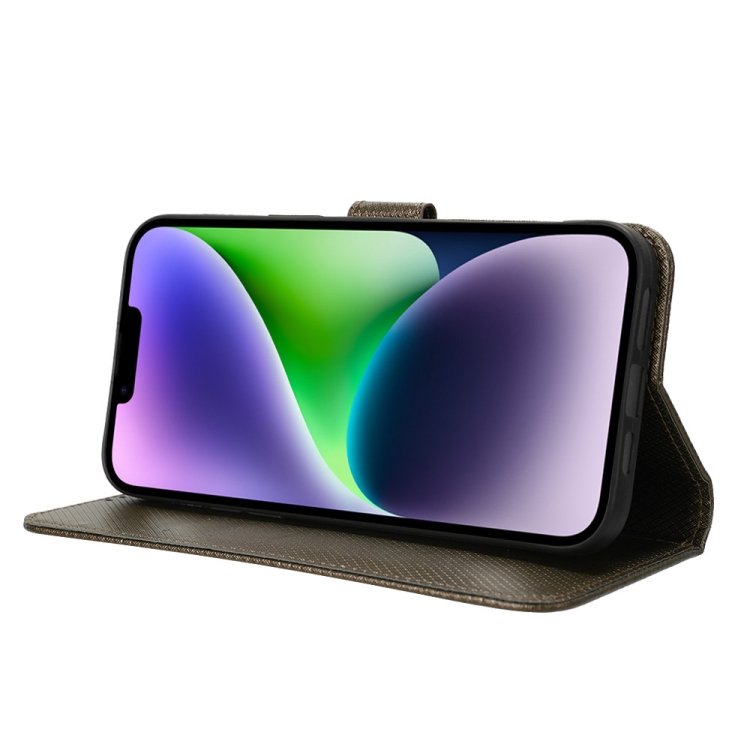 Funda de teléfono iPhone 14 Cuero Textura de Diamante (Marrón)