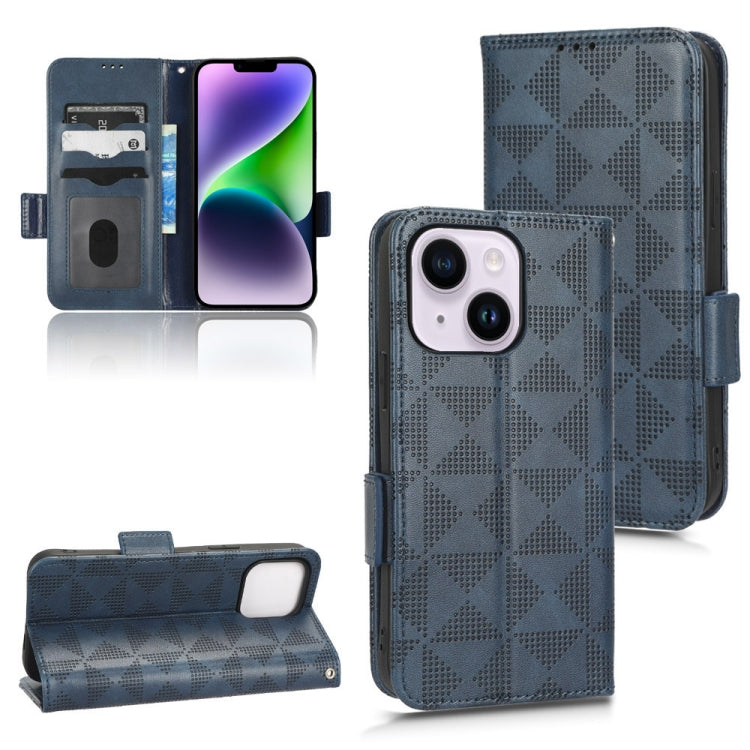 Funda de Teléfono iPhone 14 Cuero Triángulo Simétrico (Azul)