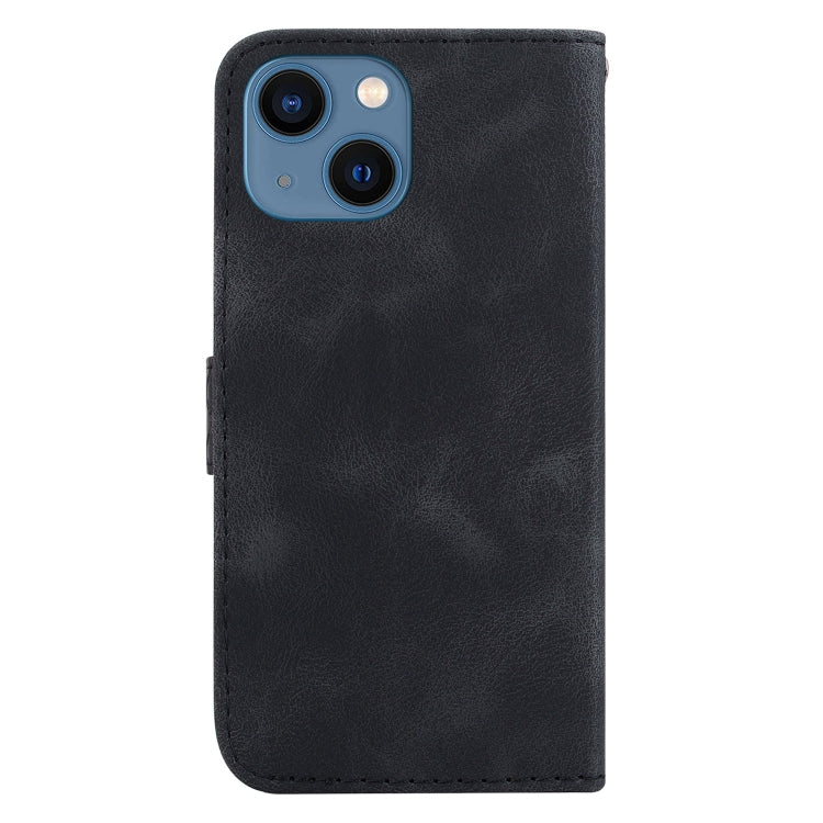 Funda de Teléfono iPhone 14 Cuero En Relieve En Forma de 7 (Negro)