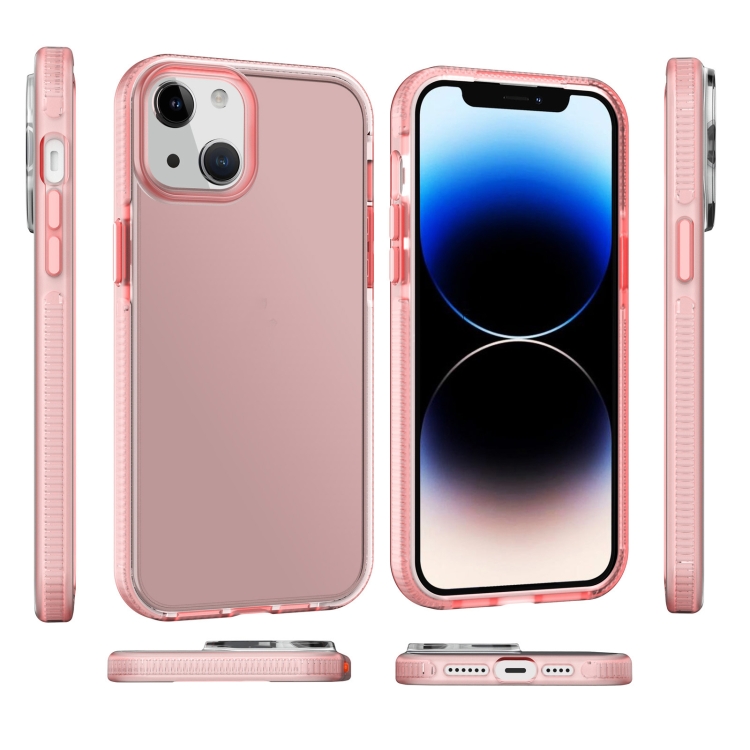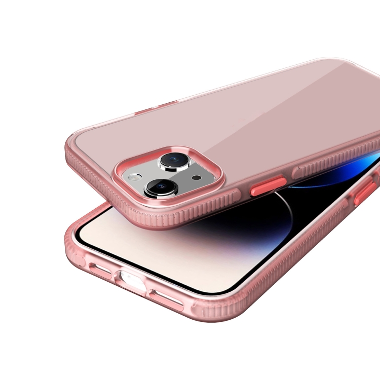 Funda de Teléfono TPU iPhone 14 Alta Transparencia Prueba de Golpes Dos Colores (Rosa)