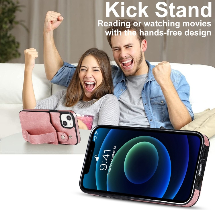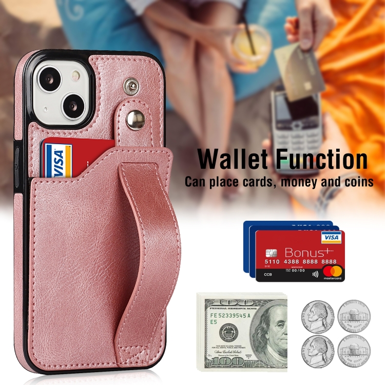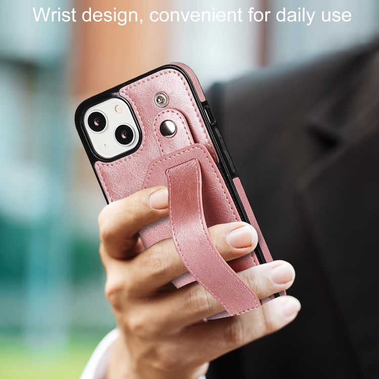 Funda para Teléfono iPhone 14 con Correa para la Muñeca (Oro Rosa)