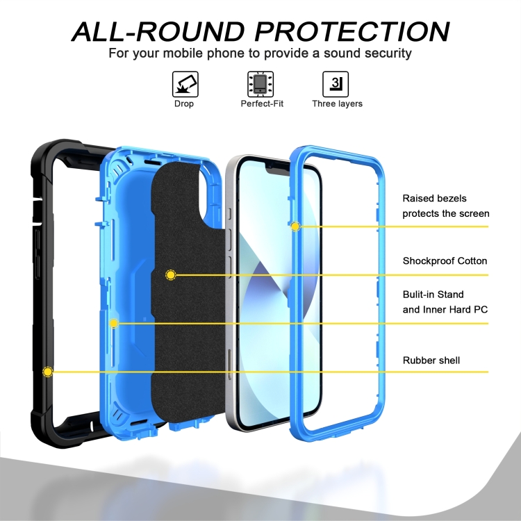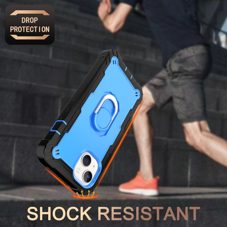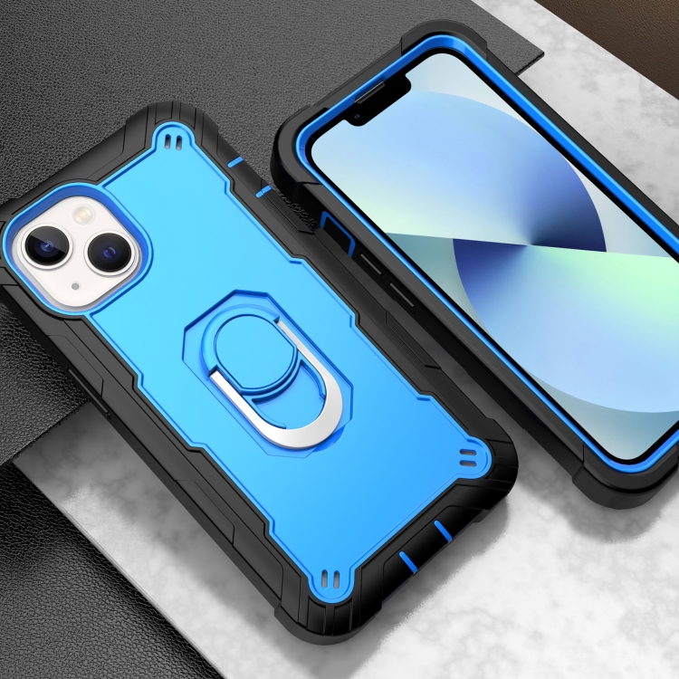 Funda para Teléfono iPhone 14 con Soporte de Anillo (Negro + Azul)