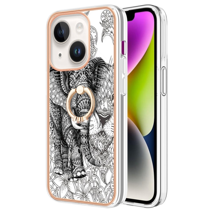 Funda para iPhone 14 Galvanoplastia Imd Doble Cara con Soporte para Anillo (Totem Elephant)