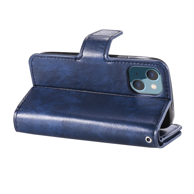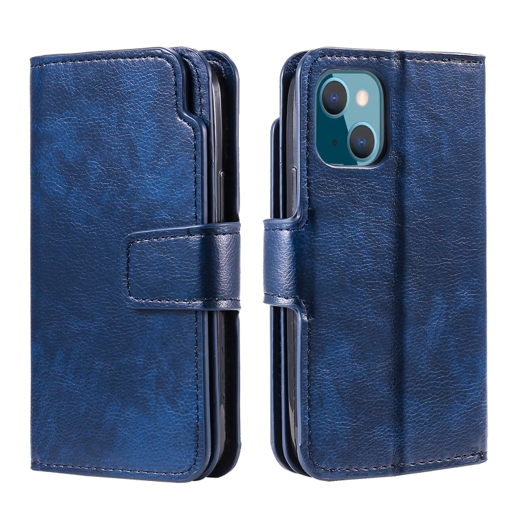 Funda de Cuero para Teléfono iPhone 14 Litchi Texture 9 Card Tri-Fold (Azul)