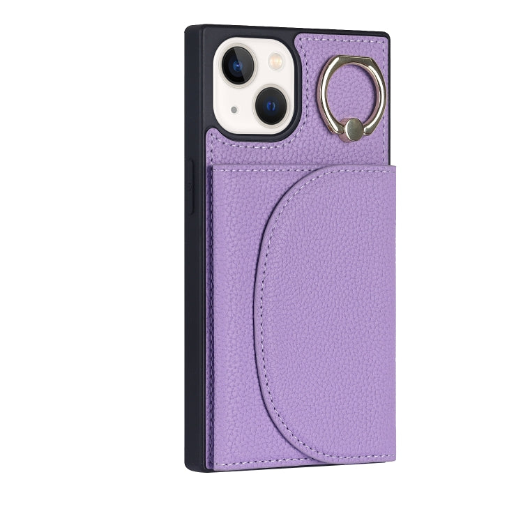 Funda para iPhone 14 Litchi Texture Card Bag Phone Case (Púrpura)