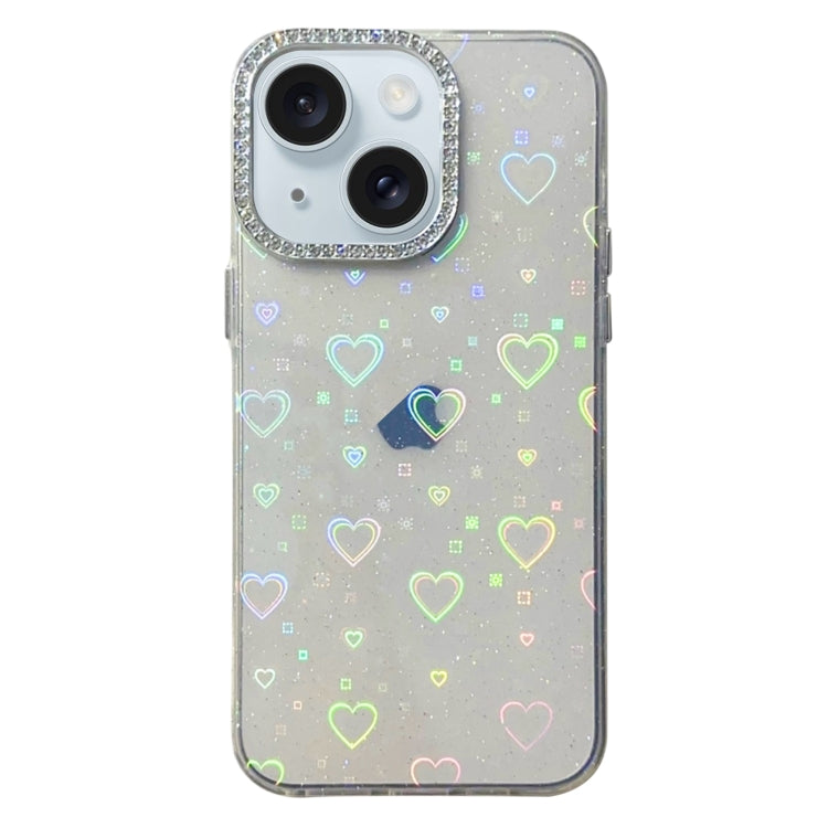 Funda para iPhone 14 Love Pattern Diamond Lens Frame Imd Acrílico (Blanco)