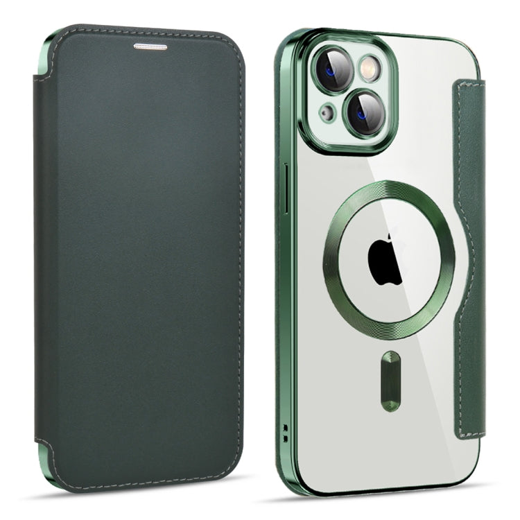 Funda para Teléfono iPhone 14 Magsafe Magnetic Rfid Cuero Antirrobo (Verde Oscuro)