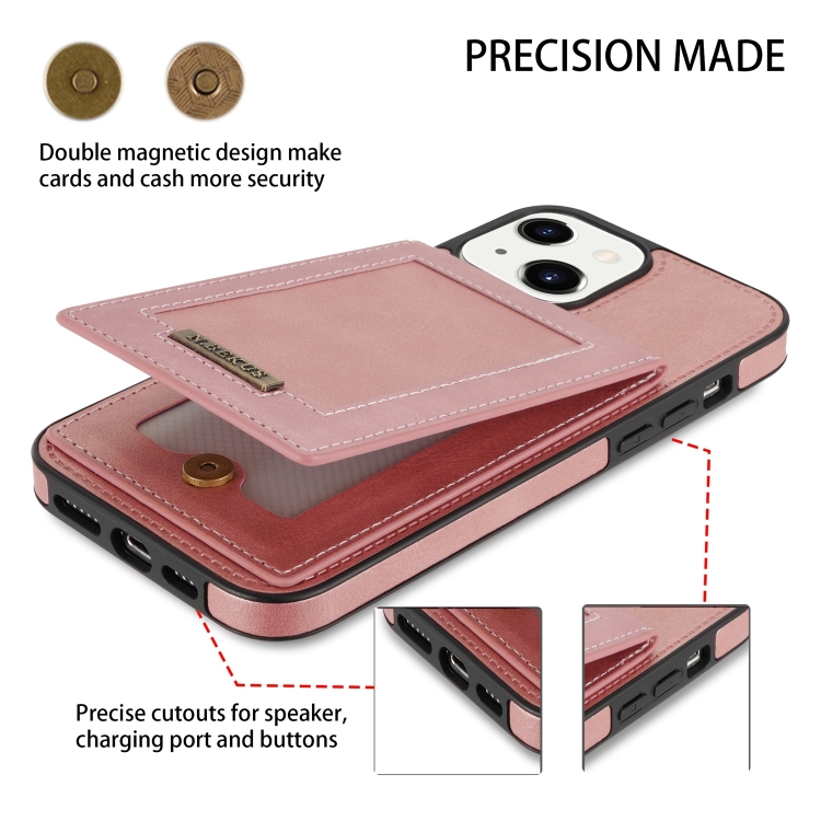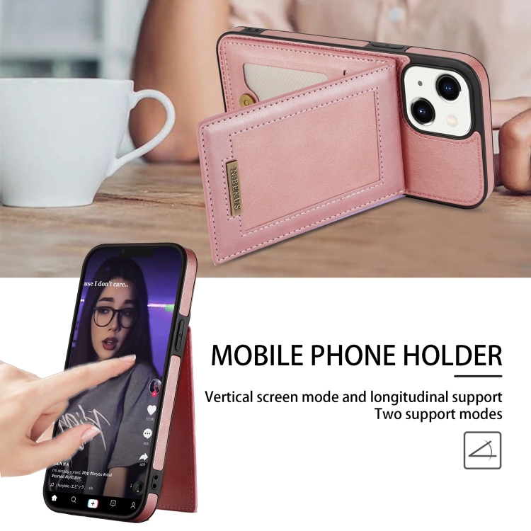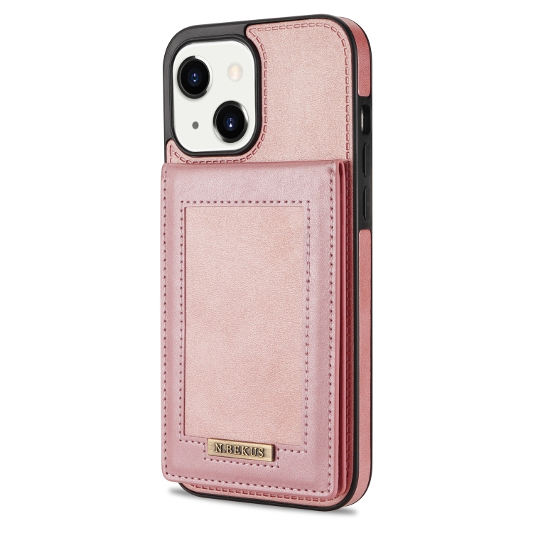 Funda para iPhone 14 N.Bekus Vertical Flip con Ranura para Tarjetas y Rfid (Rose Gold)