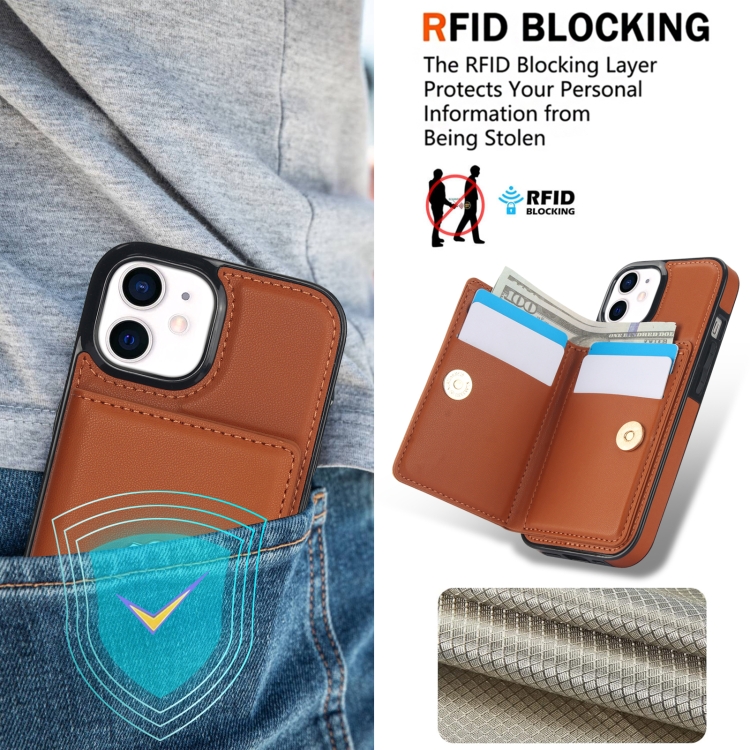 Estuche para Teléfono iPhone 14 Plus con Soporte para Anillo y Tarjeta Antirrobo Rfid (Marrón)