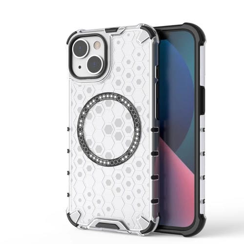 Funda para Teléfono iPhone 14 Plus a Prueba de Golpes con Anillo Magnético en Forma de Panal (Blanco)