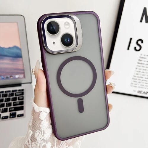 Funda para Teléfono iPhone 14 Plus J3 Magsafe Frame Bracket a Prueba de Golpes (Púrpura Oscuro)