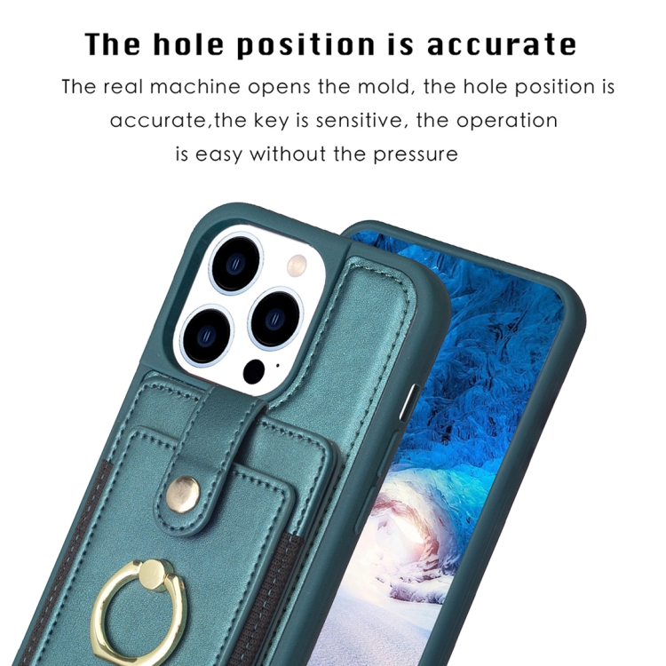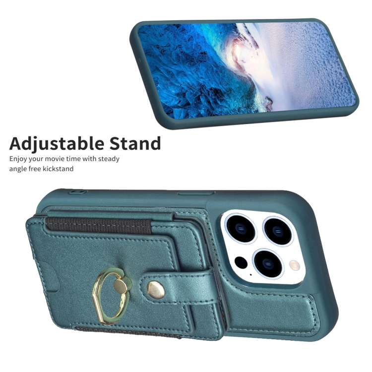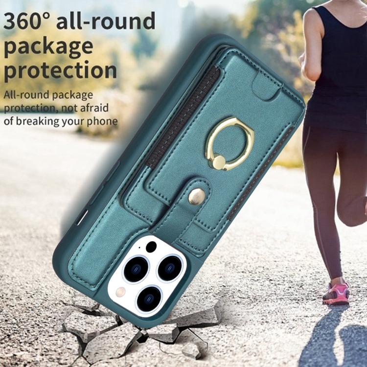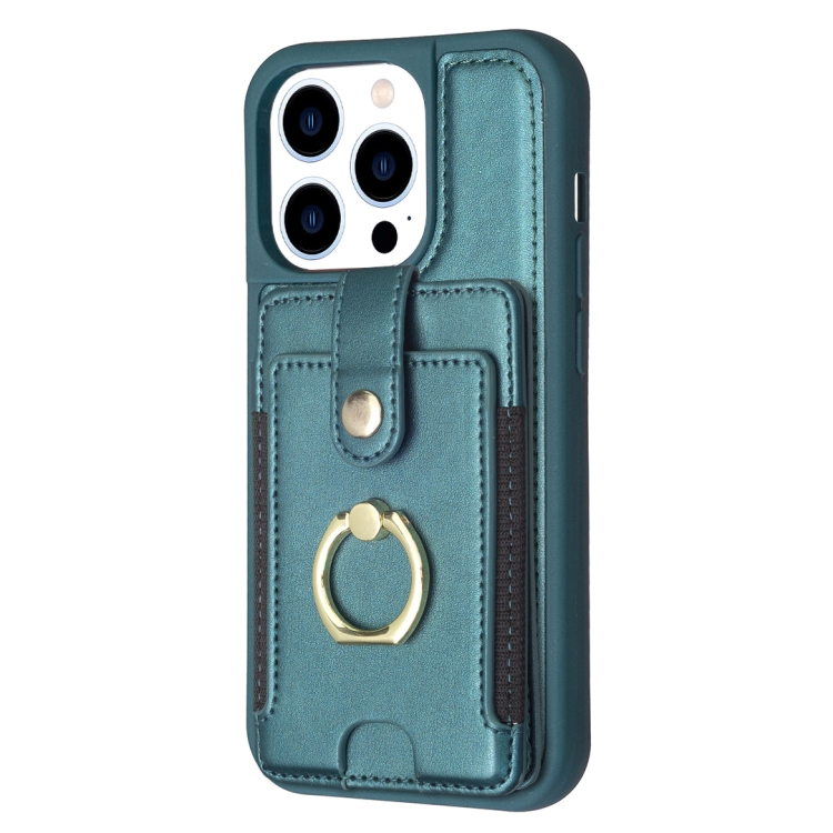 Funda para iPhone 14 Pro Bf27 Anillo de Metal Tarjeta Bolsa Titular Caja del Teléfono (Verde)