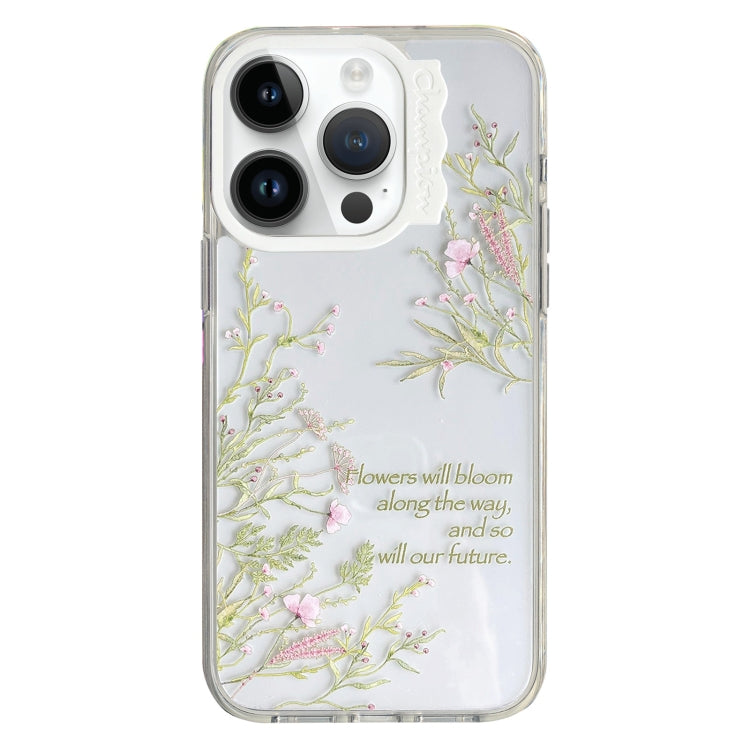 Pour iPhone 14 Pro Étui de téléphone à motif créatif de cercle de vagues colorées (fleur blanche)