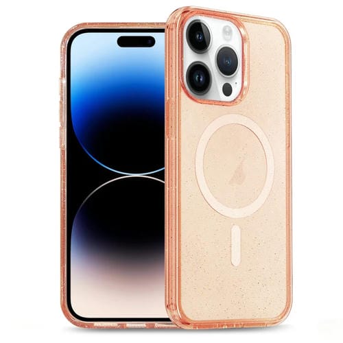 Funda para Teléfono iPhone 14 Pro TPU Hybrid PC Glitter Powder Magsafe (Naranja)