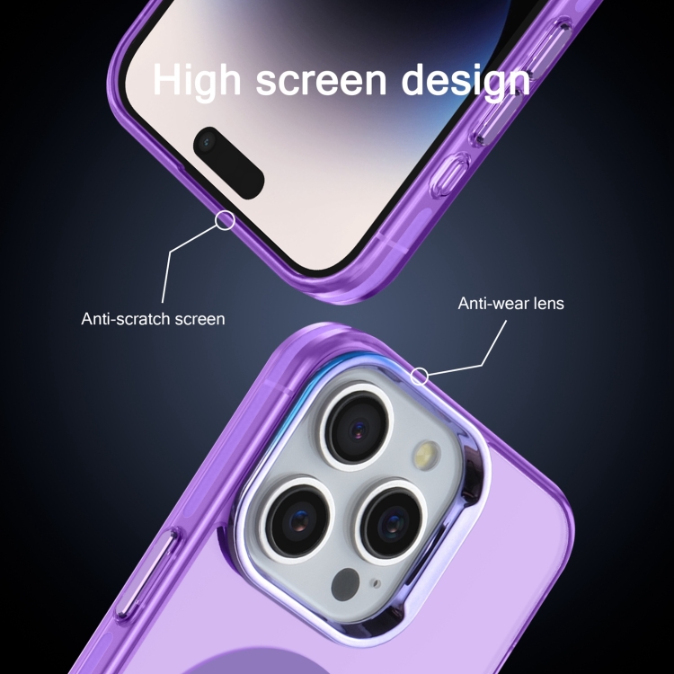 Caja de Teléfono Híbrida para iPhone 14 Pro Max TPU para PC Imd Magsafe Electrochapada (Púrpura)