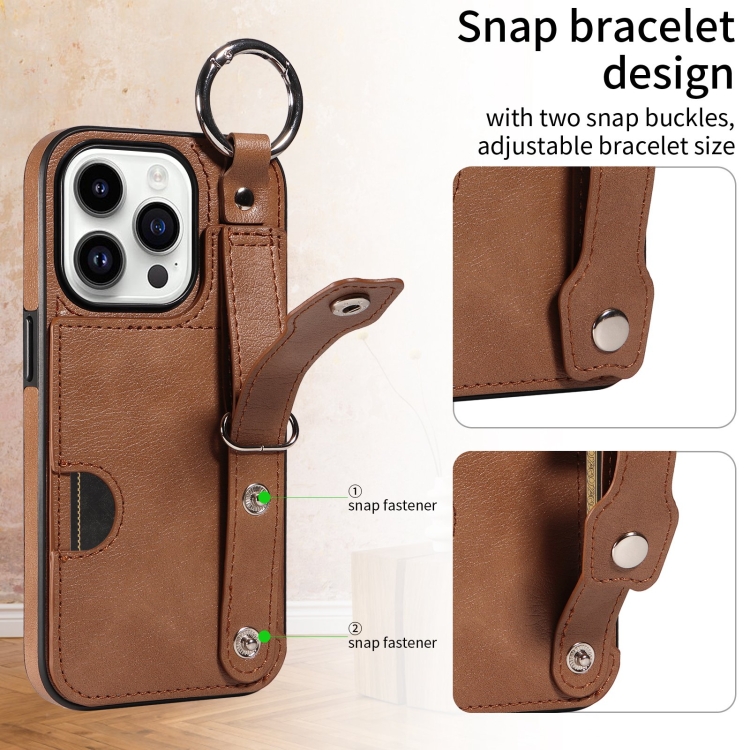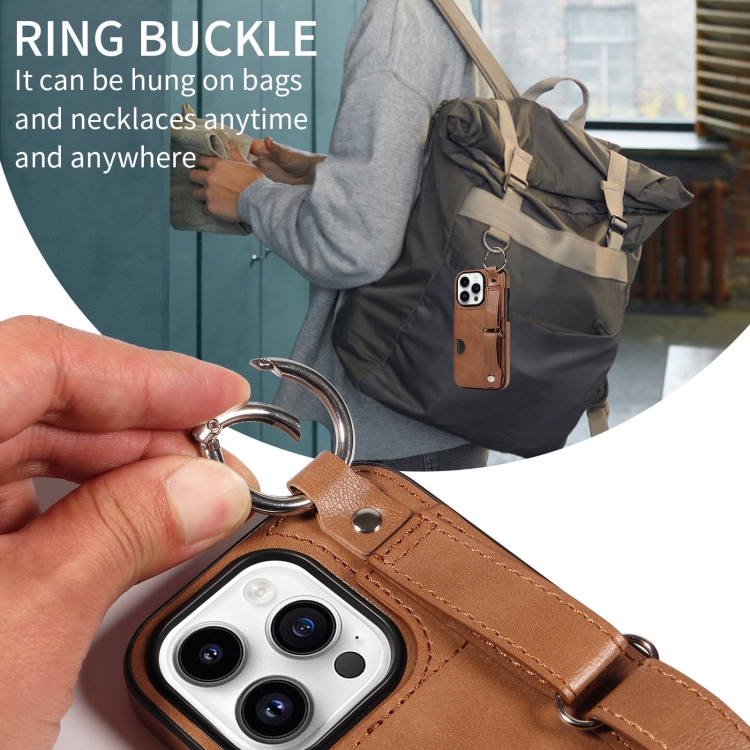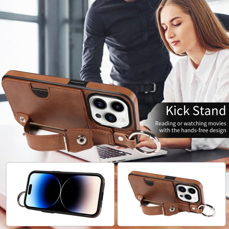 Caja del Teléfono iPhone 14 Pro Max con Anillo y Ranura para Tarjeta Textura de Pantorrilla (Marrón)