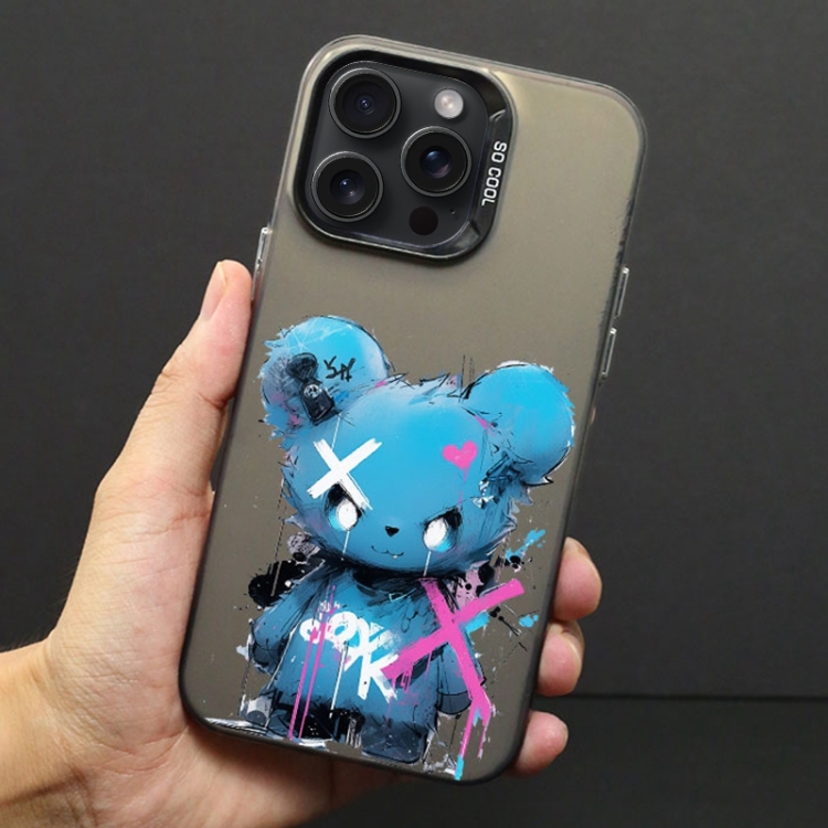 Carcasa para iPhone 14 Pro Max Color Ink Frosted PC con Estuche TPU (Oso Azul)