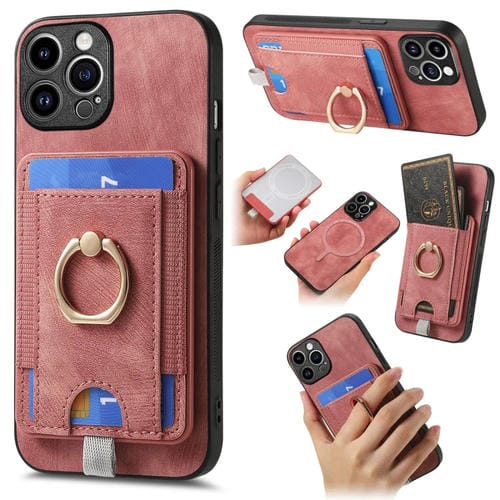 Estuche para Teléfono iPhone 14 Pro Max Cuero con Bolsa para Tarjeta Magnética Divisible Retro (Rosa)