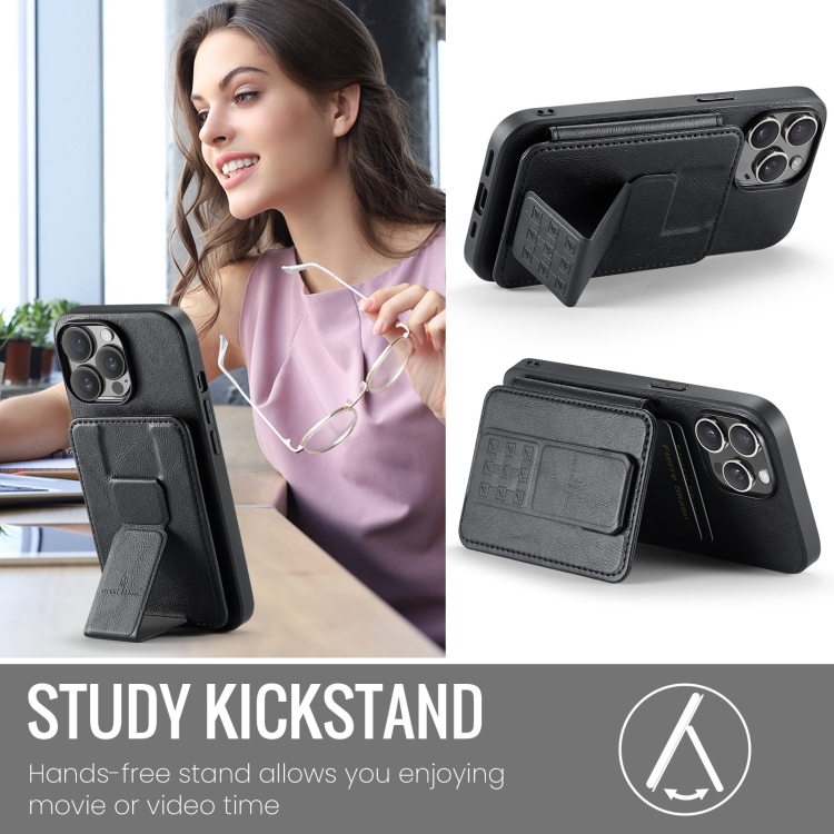 Funda para Teléfono Fierre Shann iPhone 14 Pro Max Oil Wax con Tarjetero de Cuero de Vaca (Negro)