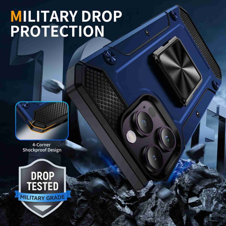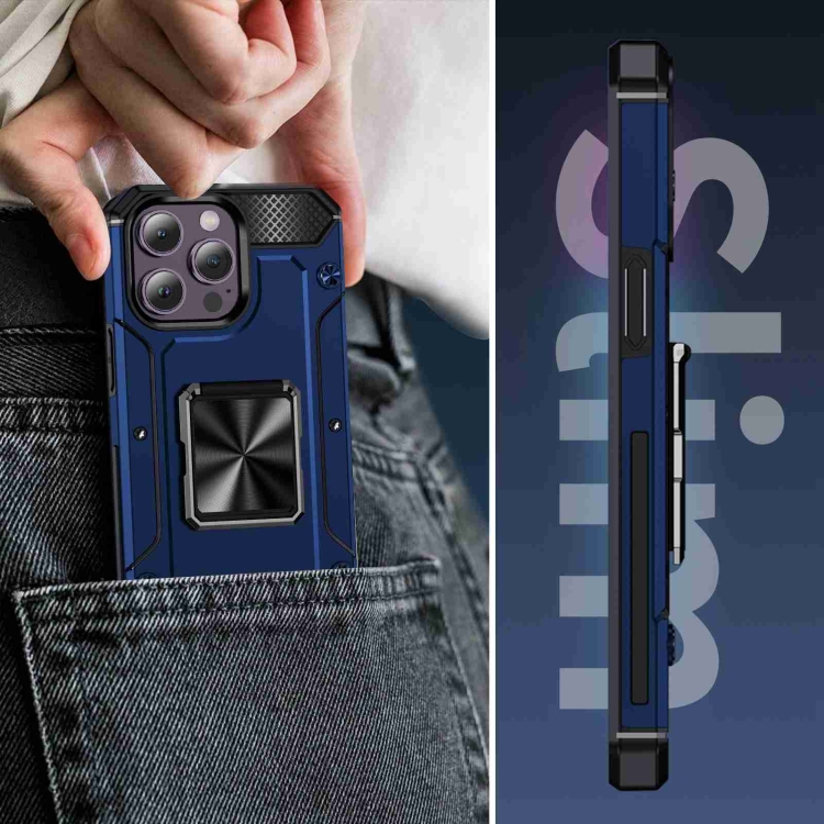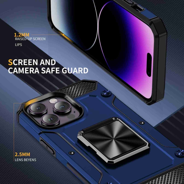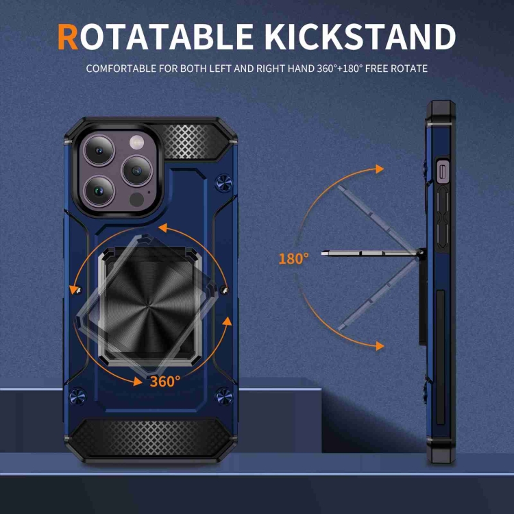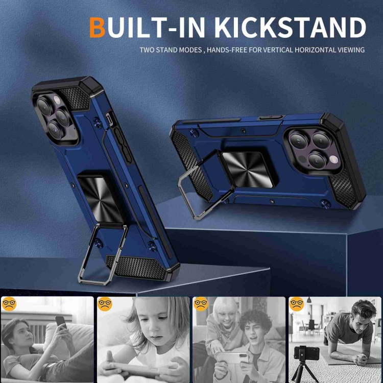 Funda para Teléfono iPhone 14 Pro Max con Soporte de Metal a Prueba de Golpes (Azul)