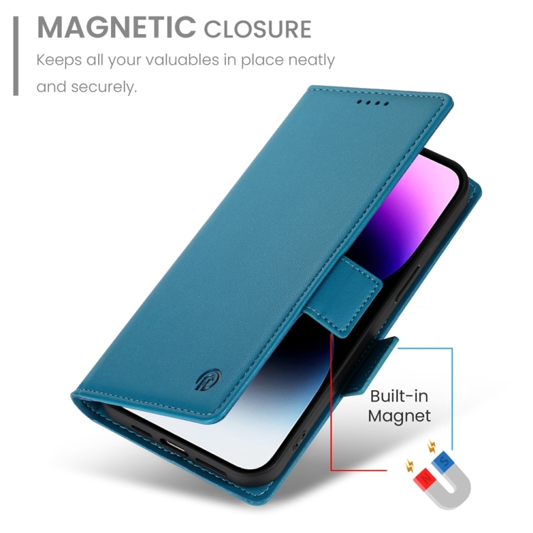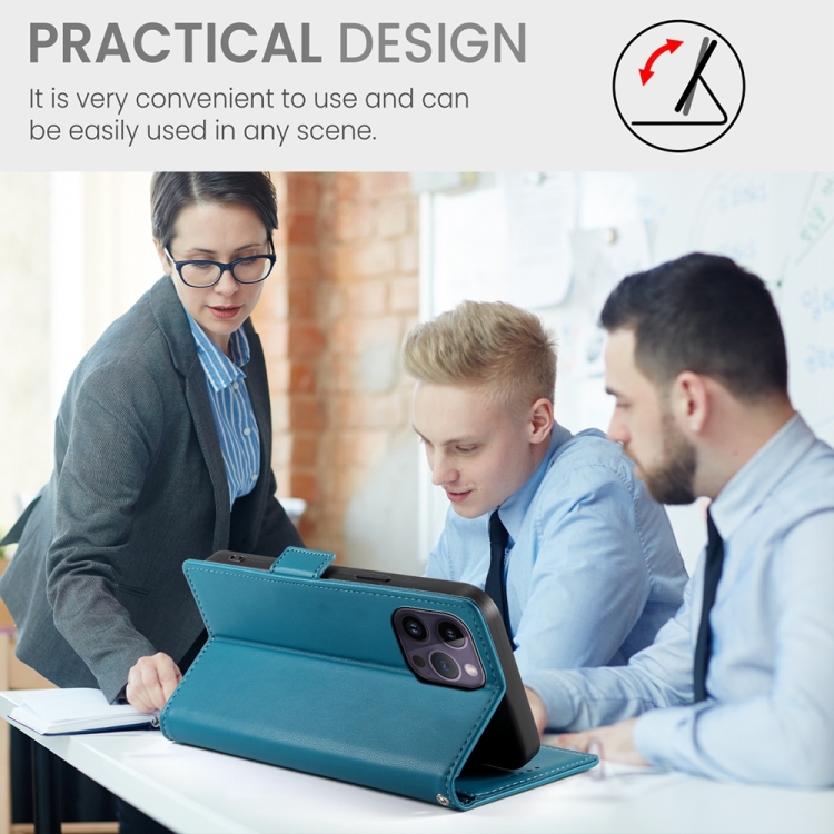 Funda para Teléfono iPhone 14 Pro Max Cuero Esmerilado Magnético con Hebilla Lateral (Azul)