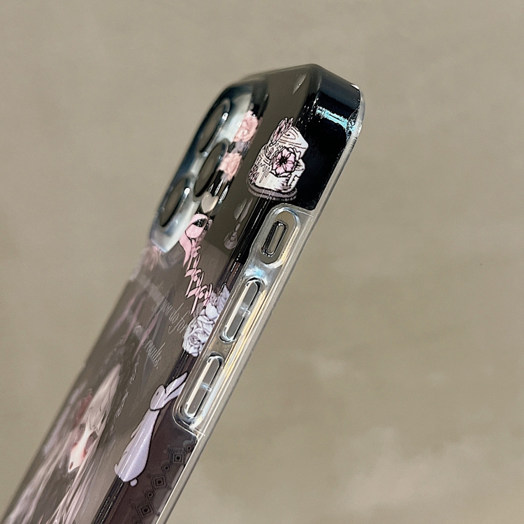 Funda para teléfono iPhone 14 Pro Max TPU Cobertura Total IMD Doble Cara (Orejas de Conejo, Rosa)