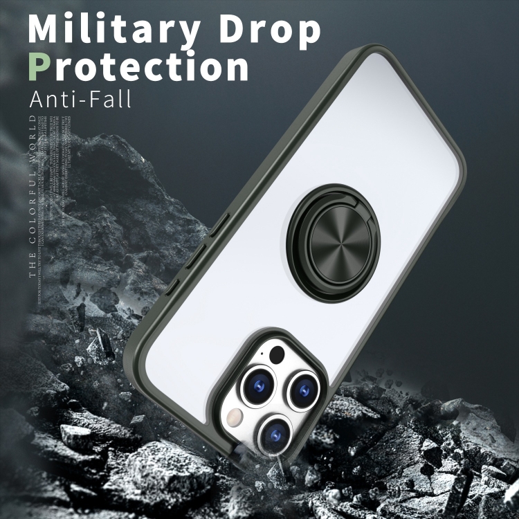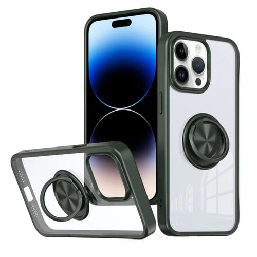 Funda para Teléfono iPhone 14 Pro Max Ring Holder PC Hybrid TPU (Verde)