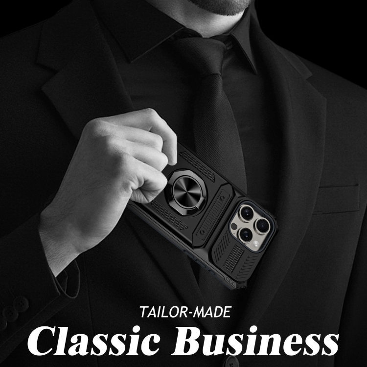 Funda para Teléfono iPhone 14 Pro Max TPU + PC con Tarjeta y Soporte para Anillo de Metal (Negro)