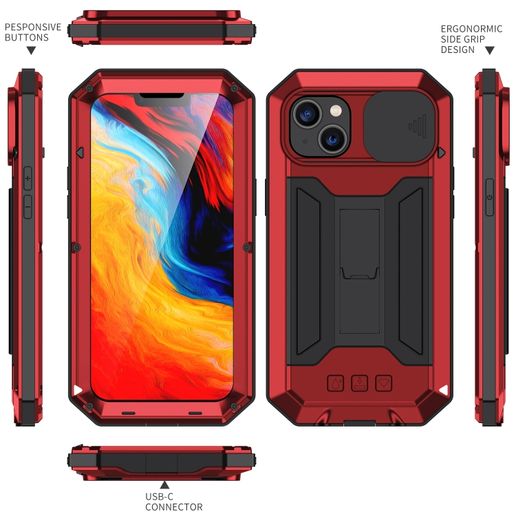 Estuche para iPhone 14 R-Just a Prueba de Golpes Agua y Polvo (Rojo)